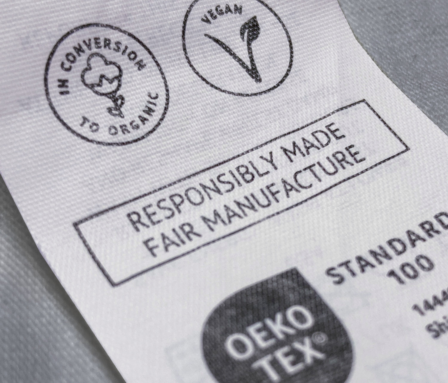Fair produziert, mit Rücksicht auf Mensch, Tier und Umwelt. Zertifiziert von Fair Wear, GOTS, OEKO-TEX® Standard 100 und PETA-Approved Vegan.